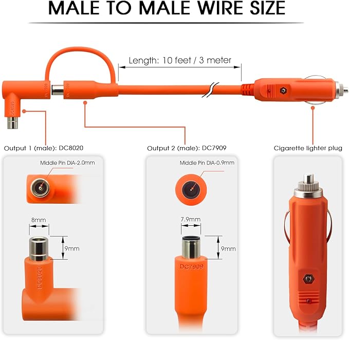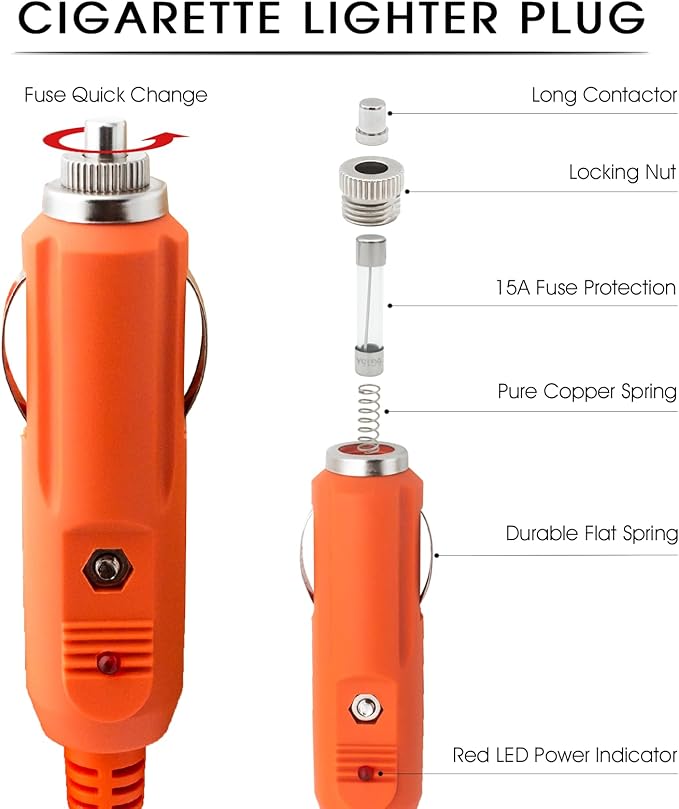 - Heavy-Duty Build: 10ft UL-certified 14AWG pure copper car charger cable ensures excellent conductivity, thermal conductivity and oxidation resistance. Features a 15A fuse, double PVC jacket, and structurally robust DC 8mm connector, safe and reliable