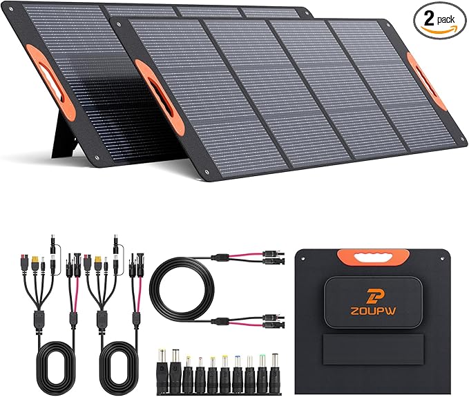 - 【What You Get】2*160W solar panel, 2*10ft 5-in-1 solar cable(solar to XT60/DC5521/DC7909/DC8020/ANDERSON), 1*6.6 ft solar-to-solar series extension cable, 1*user manual,1*10-in-1 DC connector. Meanwhile, ZOUPW provides 12-month warranty and 30-day money-back guarantee as well as 7*24 friendly customer service.