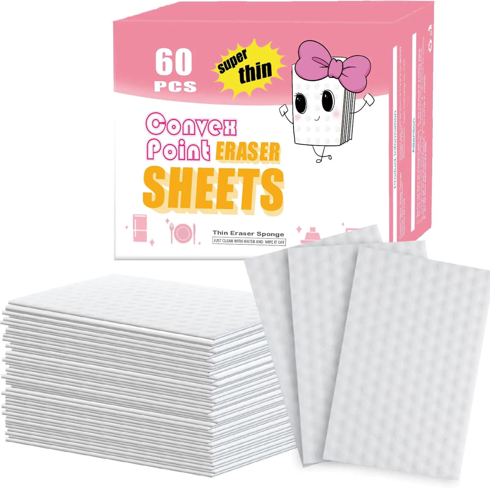 [Super Thin&New Look - Compared with traditional thick sponge the latest 8x compression upgrade technology and convex point friction surface magic thin eraser sheets make it easier to clean narrow corners and some curved irregularly shaped objects the contact coverage area is larger increase the strength of use which can effectively clean make the magic sponge eraser sheets less prone to tearing and improving durability. Simple and Efficient - Coffee stains tea stains oil stains and marker pens can be wiped efficiently off with only water. The cleaning sponge can be discarded will not pollute the environment. The convex point increases friction,making the small drum shape can penetrate deeper into the uneven surface making the stain more adsorbed and improving the cleaning effect. Unique Materials - The powerful eraser wipes use the latest nanotechnology and is made of melamine resin. Physical cleaning: The eraser sheets only needs to be cleaned with water no detergent is needed. All-Purpose Household - No need for additional cleaners simply use our magic sponge eraser sheets with water to clean various surfaces. You can use magic sponge eraser sheet to clean blenders coffee machines and toasters. The melamine sponges can also be used to wipe leather products shoes car interiors and toilet utensils. Great ability to use them anytime anywhere. Guarantee&Service - Stop spending money on a range of household cleaning products just buy these magic sheets in bulk and save. They work like magic on many surfaces and are an essential part of your house cleaning tools. If you have any questions about the product please do not hesitate to contact us.]