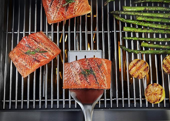 - Includes Precision Grill Tongs, Spatula and Basting Brush