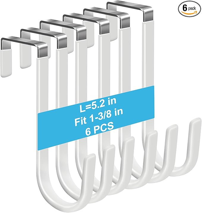 - Fashionable appearance No need to perforate: The white single over the door hooks have a stylish design, and the surface of the hook is specially crafted to prevent corrosion and rust. No need to punch holes or glue, just hang on the top of the door, you can easily organize the room.