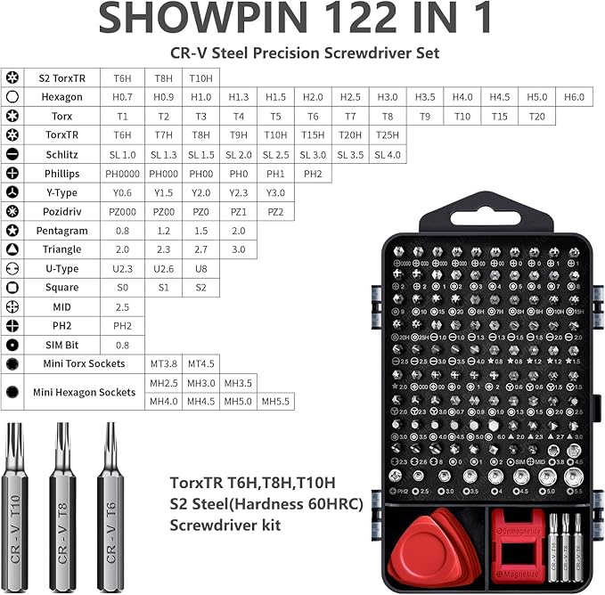 Precision Screwdriver Set, SHOWPIN 122 in 1 Computer Screwdriver Kit, Laptop Screwdriver Sets with 101 Magnetic Drill Bits, Electronics Tool Kit Compatible for Computer, Tablet, PC, iPhone, PS4 Repair