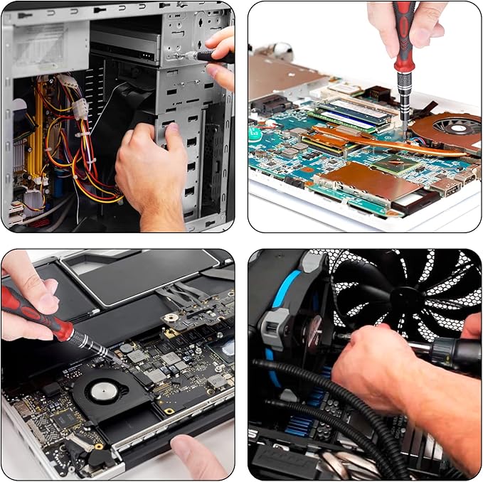 - 【Quality First】The screwdriver bits in this laptop repair tool kit are made of Cr-V Steel, after high temperature treatment process, the hardness can reach 60HRC, stronger and not easy to damage, suitable for long-term use for repairing Electronics. This computer repair kit is equipped with spare bits for frequently used models( such as phillips, slot, tri-point) to avoid the need to find a new bit or replace a new screwdriver set if the bit is lost or damaged.