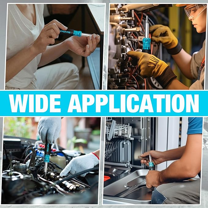 - INTERCHANGEABLE AND PORTABLE: Features four double-ended bits conveniently stored in the handle for quick and easy changes. This design saves space and enhances portability, ideal for home, auto repair, outdoor tasks, and more.