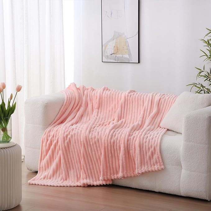 Valentines Day Decorations Light Pink Fleece Throw Blanket 50”×60” for Couch Sofa Bed,Super Soft Cozy Plush Microfiber Flannel Blanket with Stripes Design Lightweight for Adults,Woman,Girls