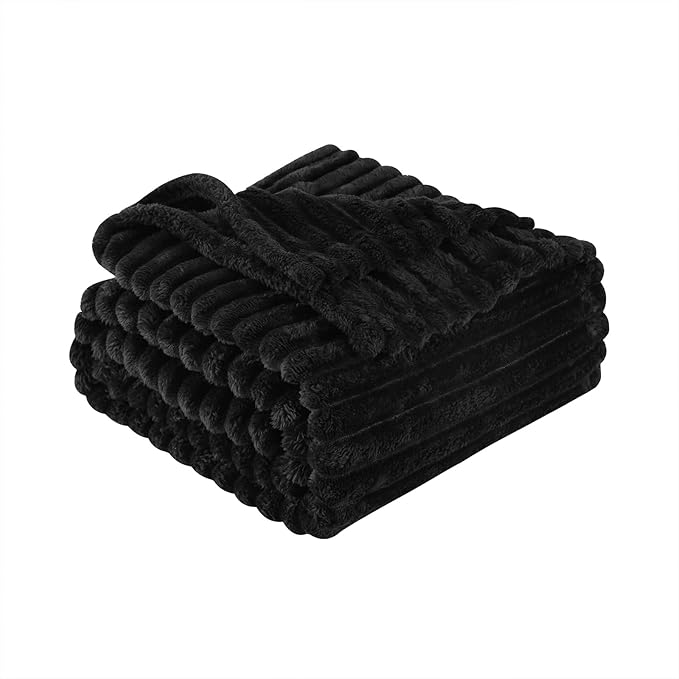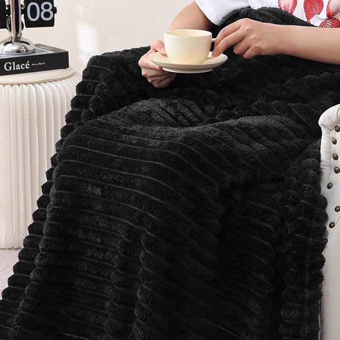 Black Fleece Throw Blanket 108”×90” for Couch Sofa Bed,Super Soft Cozy Plush Microfiber Flannel Blanket with Stripes Design Lightweight for Adults,Woman,Girls