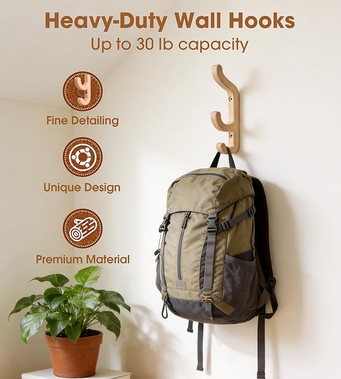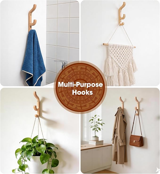 - Multi-Purpose Use : These wall-mounted wooden hook securely hold winter coats, heavy backpacks, bags, towels, umbrellas, hats, and other accessories, making them ideal for bathrooms, entryways, bedrooms, hallways, closets, or mudrooms. Perfect for daily use or seasonal gear, they help keep your space organized while supporting both heavy and everyday items safely.