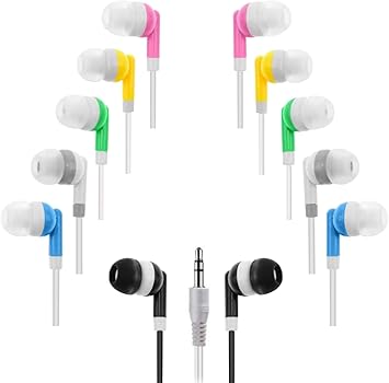 Designed with non-slip silicone buds, these earbuds can be used in classrooms or libraries, Airplanes, Buses, museums & for working out at the gym, running, sharing in lectures, and so much more. A great way to provide large groups with individual listening experiences, An inexpensive way to always having extra pairs of headphones when you need them, get this bulk pack of in-ear earbuds today and enjoy high-quality sound on the go.